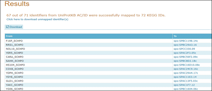 Indique o organismo Schizosaccharomyces pombe e SEARCH